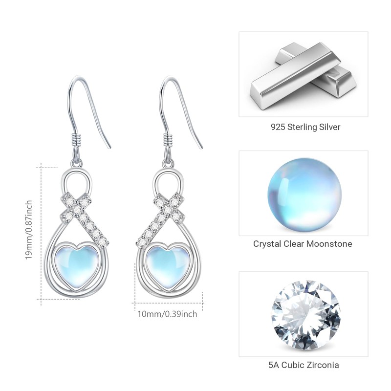 Infinity Dangle Earrings for Women 925 Sterling Silver Heart Love Moonstone Drop Earring Religious Cross Jewelry Valentine's Day Birthday Gift for Girls Wife, Sterling Silver, Moonstone Cubic Zirconia