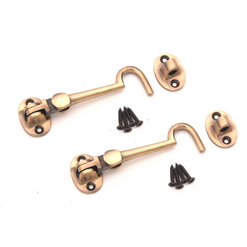 - ✅Description: Our cabin hooks are based on high quality solid brass material, giving it durability and offers a long lasting style. It comes in two parts, a door hook and eye latch. These door latches can be fastened onto two surfaces such as a fence and door, allowing the surfaces to stay together in a locked position or to part allowing for entry.