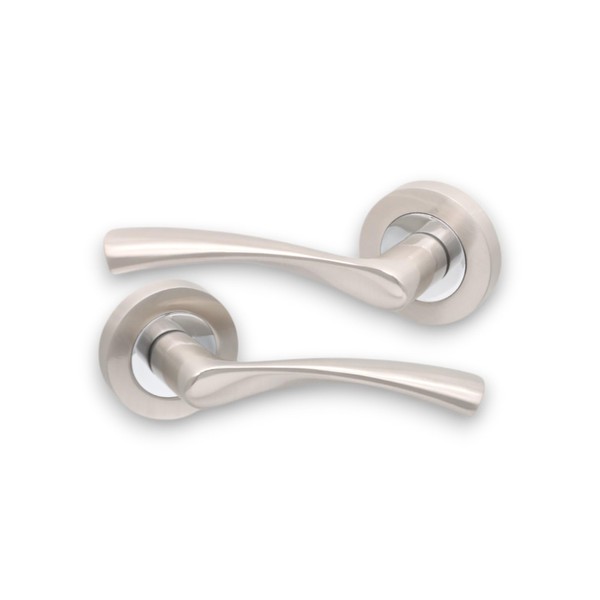 - ✅Description: Our dual tone twisted lever on rose door handles with modern decorative design are extremely practical as they can be used with a standard tubular latch for a normal door opening and closing, with a mortice lock or euro profile sashlock. They are perfectly suitable for any interior and exterior door or as a replacement door handles.