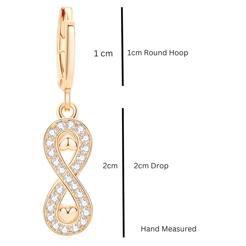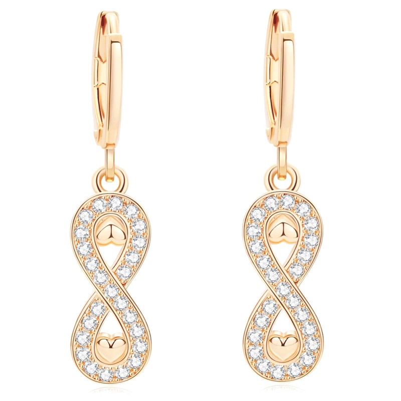 - DESIGN ELEMENTS: Infinity-shaped drop earrings featuring elegant heart details and sparkling round brilliant-cut zircon stones