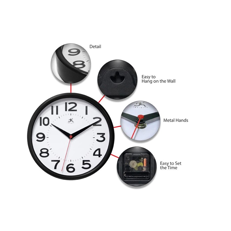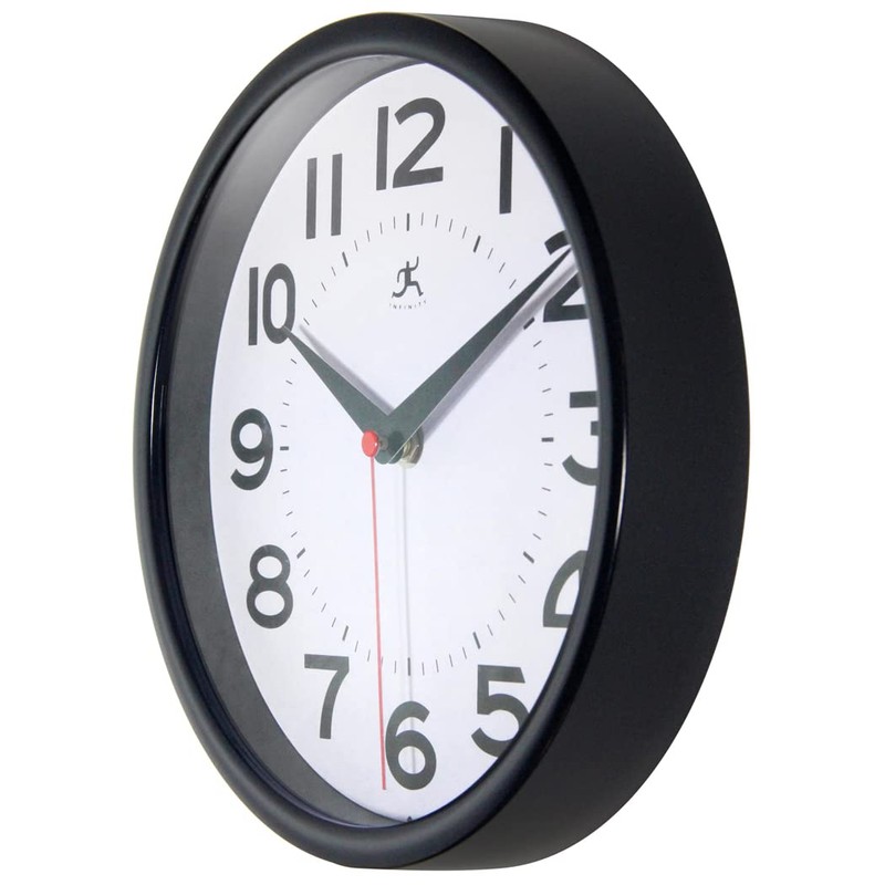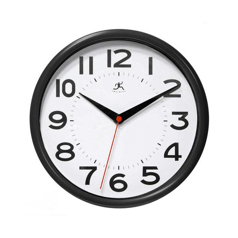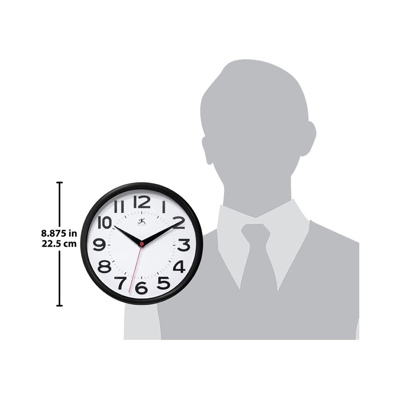 Infinity Instruments Metro 9 Inch Round Silent Non- Ticking Modern Wall Clock, Modern Style Décor for Any Room, Easy to Read Face, Black