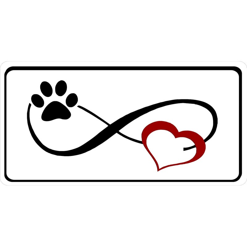 Infinity Paw Print with Red Heart Photo License Plate