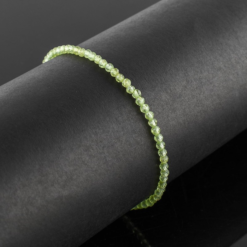 - Details - Gemstone: Natural Green Peridot | Gemstone Origin: China | Birthstone Month : August | Stone Cut : Faceted | Stone Shape : Rondelles | Stone Quality & Grade : Very Good / A+ | Metal : 925 Sterling Silver | Stone Weight : Approx 14 to 16 carats | Stone Size : Approx 3mm | Stone Treatment : Natural | Jewelry Length : 7+1 inchs | Closure by a lobster lock and Extender Chain made of Sterling Silver.