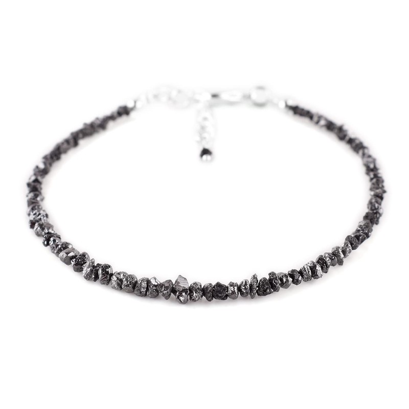 InfinityGemsArt Raw Black Diamond Rough Gemstone Full Beaded Bracelet, Dainty Bracelet, Birthstone, Bracelets for Women, Healing Crystals Jewelry, Rhodium Plated 925 Sterling Silver Chain 8 inch