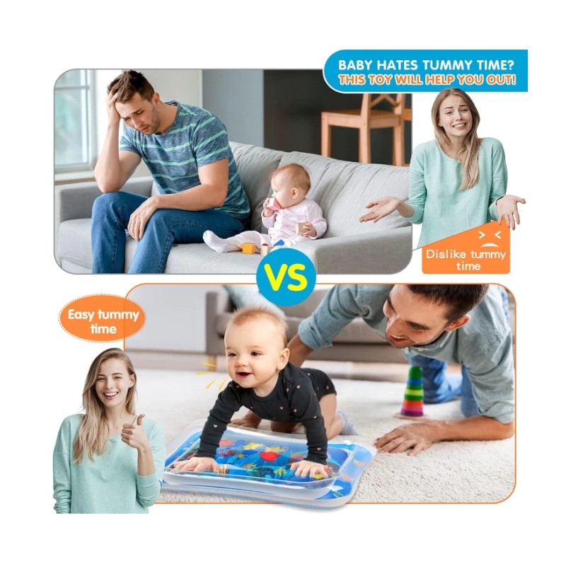 - Easy to use: Just fill water into the middle of the water mat and inflate the edge of the tummy time water mat with air.
