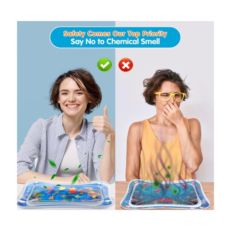 - Superior quality and 100% leak-proof: Our baby water mats are made from durable, 100% BPA-free and non-toxic, heavy PVC materials. Each of our game mats has been rigorously tested. It is durable and waterproof, so it doesn't wet your baby's body.
