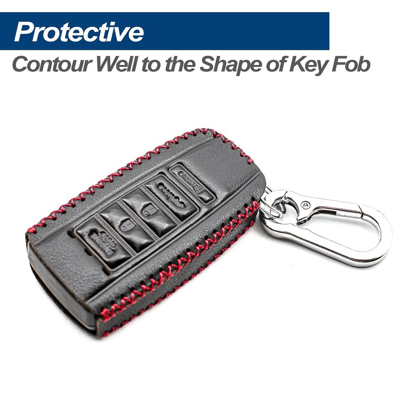 - Material: High quality genuine leather material, excellent touch feeling and stylish. Pretty durable and special design make your key stand out, easy to install and perfect snug fit.