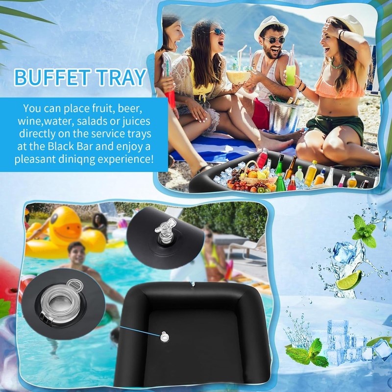 Inflatable Buffet Ice Cube Tray Bar for Pool Parties, Pool Party Accessories, Buffet, Salad, Food and Drink, Tray for Party, Picnic and Camping, 130 x 60 x 12 cm, Iron Containing