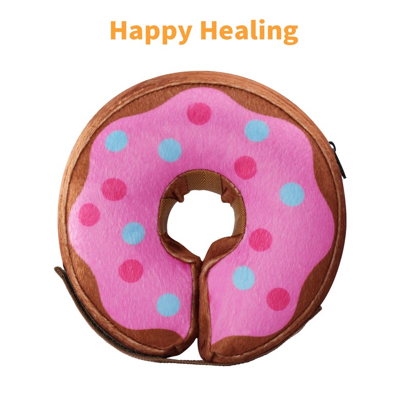 - 【DESIGNED IN SWEDEN】 Dogs possess only two cones and can only discern blue and yellow, so we design fresh donut and pizza recovery collars. Comfortable to wear without interfering with peripheral vision or the ability to eat or drink.