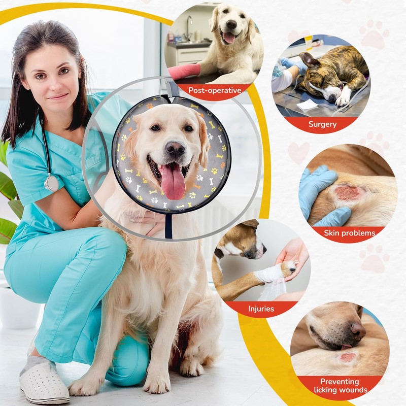 - 🐾 COLLAR FOR DOGS AFTER SURGERY: The inflatable collar provides comfort and more effective protection after surgery or injury, it comes with a clear, removable shield that provides the dog a clearer view without interfering with eating, drinking, playing or sleeping, freedom of movement. Come and choose one for your beloved pet!