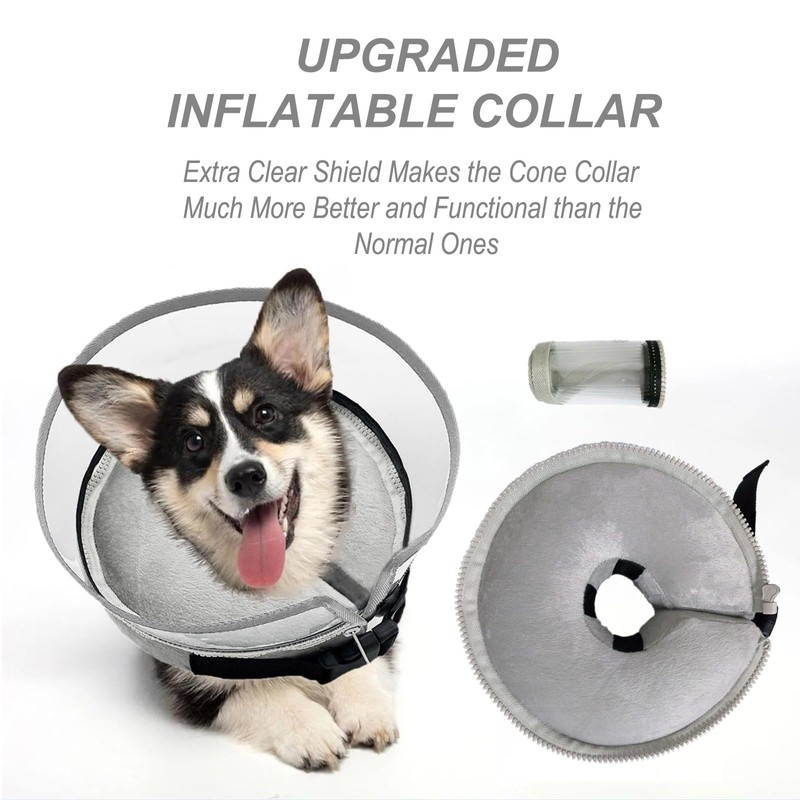Inflatable Dog Cone Collar for Large Medium Small Dogs, Soft Dog Cone Alternative, Elizabethan Collar Dog Donut Collar E Collar Blow Up Cone for Dogs Cats to Stop Licking After Surgery (Gray, XL)