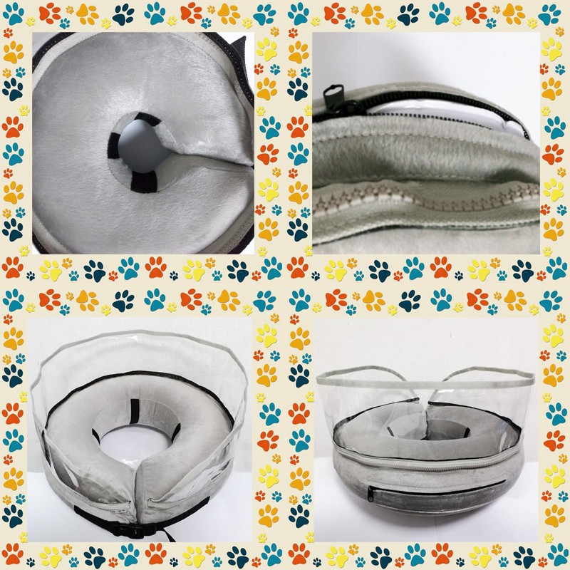 - Quality Materials-The donut collar for dogs after surgery outer layer is made of comfortable and breathable cotton fabric, anti-scratch and anti-bite, soft fabric, won't hurt your dog's neck, comfortable to wear. Pet's hair won't stick to it easily. The interior is made of eco-friendly PVC, you can open the zipper to take out the PVC inner and it's a breeze to wipe clean. The outer plush cloth is machine washable. You can deflate it and store it in a small space when you do not use it. Come with pump for easily blow up.
