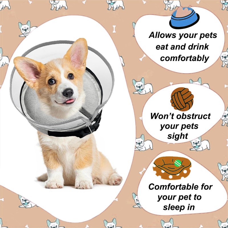- No Stress Dog Cone-We all know how pets hate the cumbersome cone, poor dogs and cats would keep tripping on it and could not get around. This inflatable cone collar for dogs WON'T let that happen, the inner air bag provides full support for the neck while keeping it lightweight. It does not block dog’s vision like traditional Elizabethan collar, which allows your doggie chase butterflys, hummers and grass hoppers all with wearing its collar.