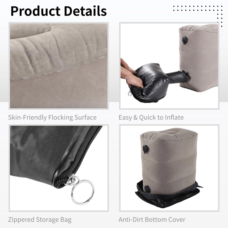 - Easy Inflation with Carry Bag: Includes a multifunctional storage bag that doubles as an air transfer pump; no mouth-blowing or bulky pump needed; simply press the bag to inflate the footrest quickly and hygienically anytime, anywhere