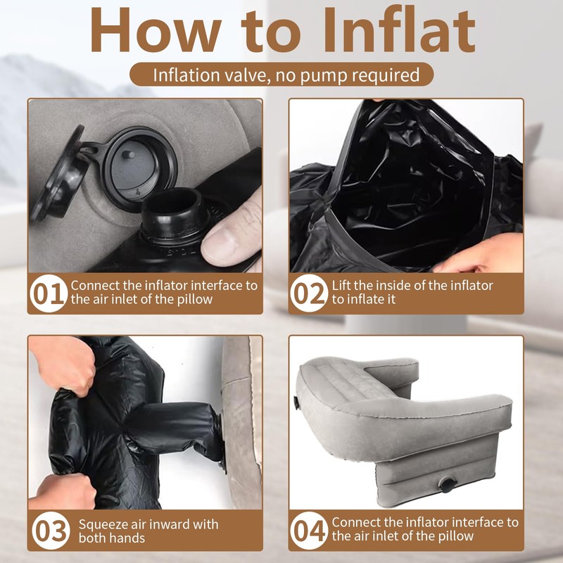 No pump required. Inflatable reading pillow has a 2-in-1 double air valve design, fast inflation and easy deflation, Simply inflate it to your desired firmness, only take 30 seconds to be a gaming pillow to provide support, deflate by hand release the air only 3-5 seconds, can be folded into a store bag to carry around. Say goodbye to bulky memory foam desk, our inflatable reading pillow lighter weight and more portable, it is easy to carry to indoor & outdoor.