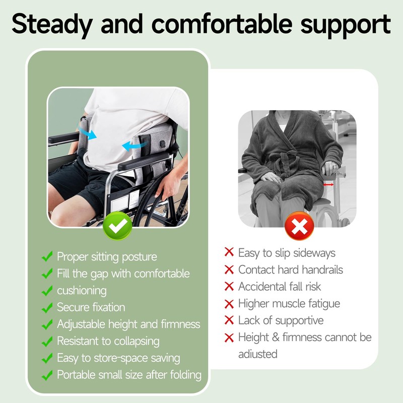 - Unmatched Versatility: Discover the freedom to support your body in countless ways! Whether you need relief for your hands, knees, hips, or ankles, or a cozy reading pillow on the sofa, our Inflatable Wheelchair Lateral Support Pillow has you covered.
