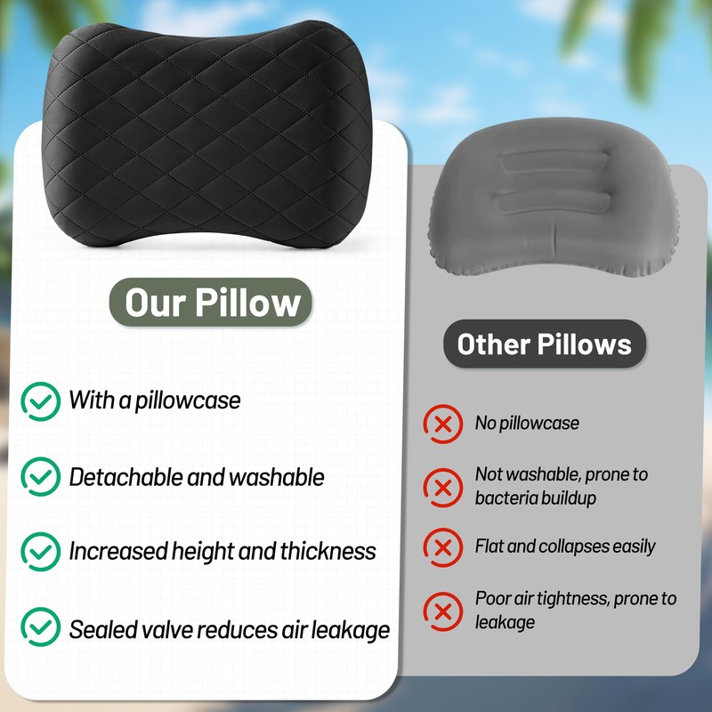 - Easy to use: the inflatable cushion is easy to use. With just a few breaths, it is inflated, and venting is just as fast. You can adjust the height of the pillow as needed.