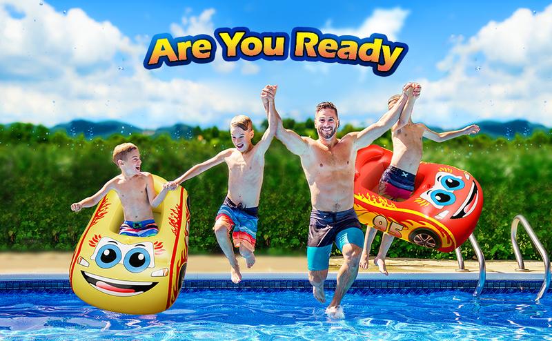 - With Battle Game :Our swimming toddler pool float are not just ordinary floats,they come with a thrilling battle toy that guarantees hours of entertainment for kids all summer long. Ingeniously crafted, the battle toy constantly absorbs water from the pool, ensuring endless fun for little ones. Our pool floats are designed to be safe and user-friendly, offering worry-free enjoyment for kids and toddlers alike.