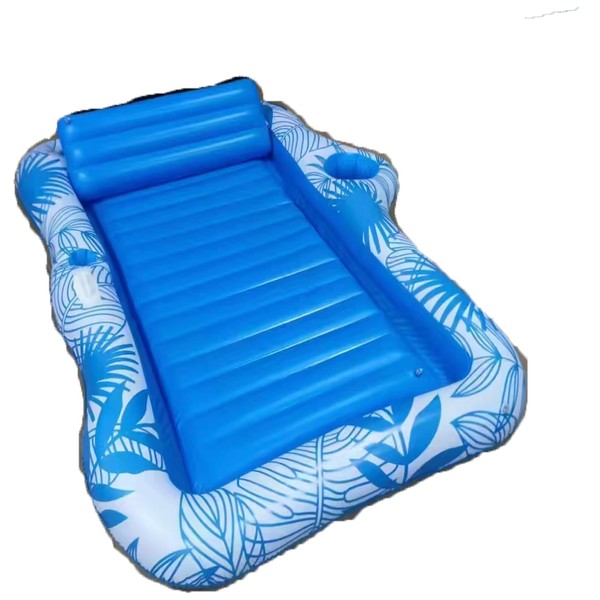 Inflatable Pool Lounger Float for Adults - 70" x 60" JIANYHW X-Large Beach Sun Tan Tub Pool Lounge Raft Sunbathing Pool Floaties with 2 Food/Drink Holder, Blow Up Tanning Pool Bed Floating Mat