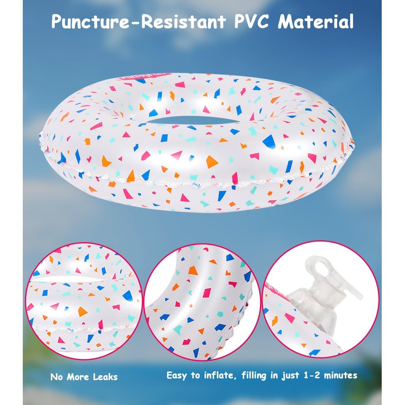 - Perfect for summer parties: unique white and colourful colour contrast designs that make you stand out in the pool. It is not only a swimming ring, but can also be used as a floating bed, photo prop or party decoration. Add fun to your summer with these colourful swimming rings and enjoy the summer explosion with your children and family.