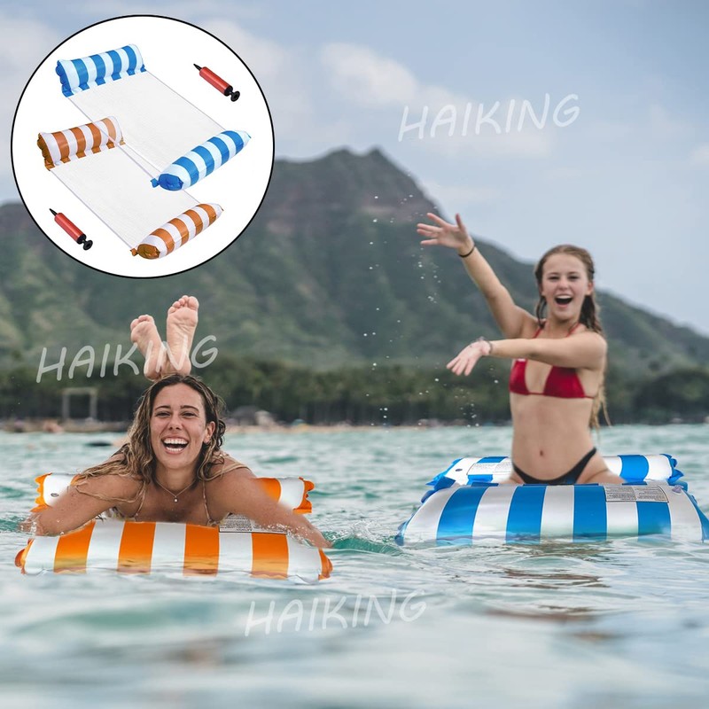 - 【You Will Receive】You will receive 2 inflatable water hammocks and 2 matching pumps. The inflatable water hammock is blue and orange. Each size is 120*70cm/47.2*27.6 inches after inflation.