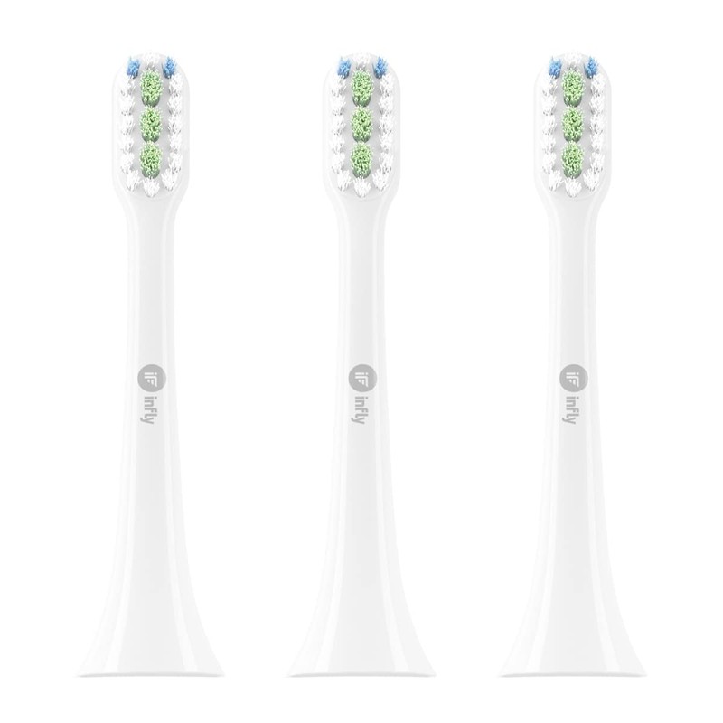 infly PT02 Replacement Brush, Sonic Type, With Cap, Dupont Brush, Soft, Set of 3, White