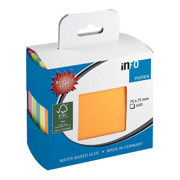 inFO Notes Sticky Note Cube, 450 Sheets, 75 x 75 mm, Packed in an Environmentally Friendly Cardboard (without Foil), FSC Certified Paper