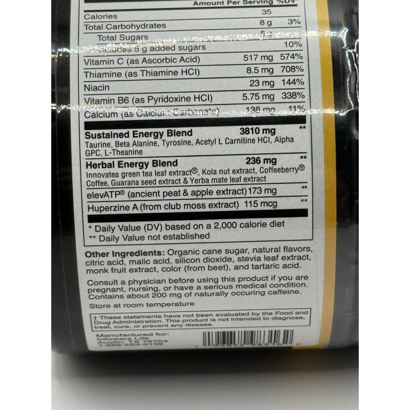 Infowars Life Turbo Force Plus Tropical Berry Flavor Sealed 7.3 OZ Memory Focus