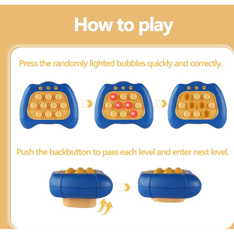 • 【Mini Hanheld Game】This latest pop game machine can break through levels by pushing quickly. Kids will engage in positive thinking, hand-eye coordination, and brain training during play challenges filled with lights and sounds, promoting your child's sensory development.