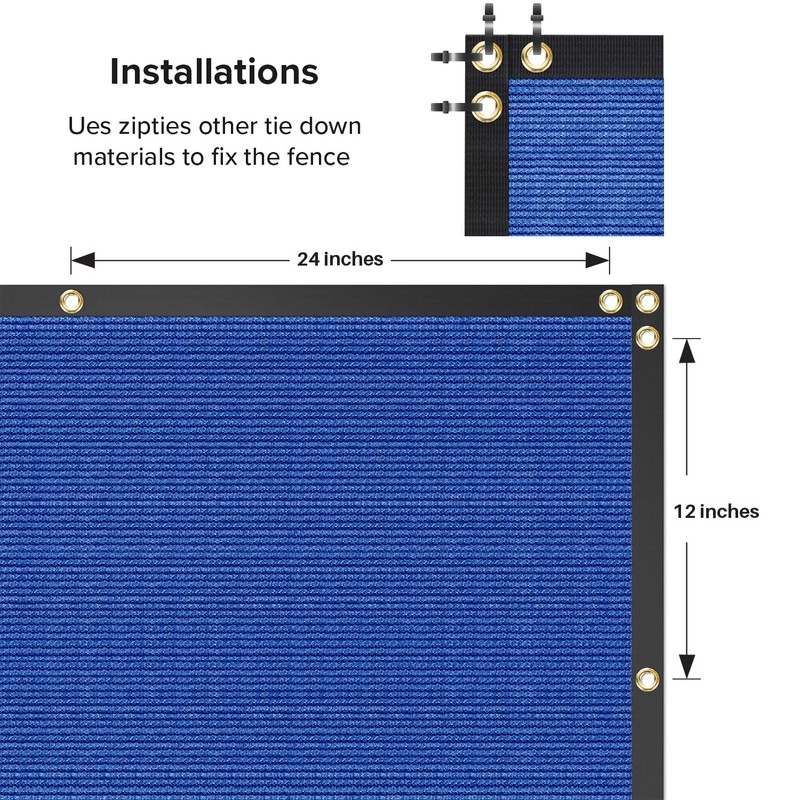 - Easy to install: use zip ties to fasten the grommets to the fence in each side. Ziptie included.
