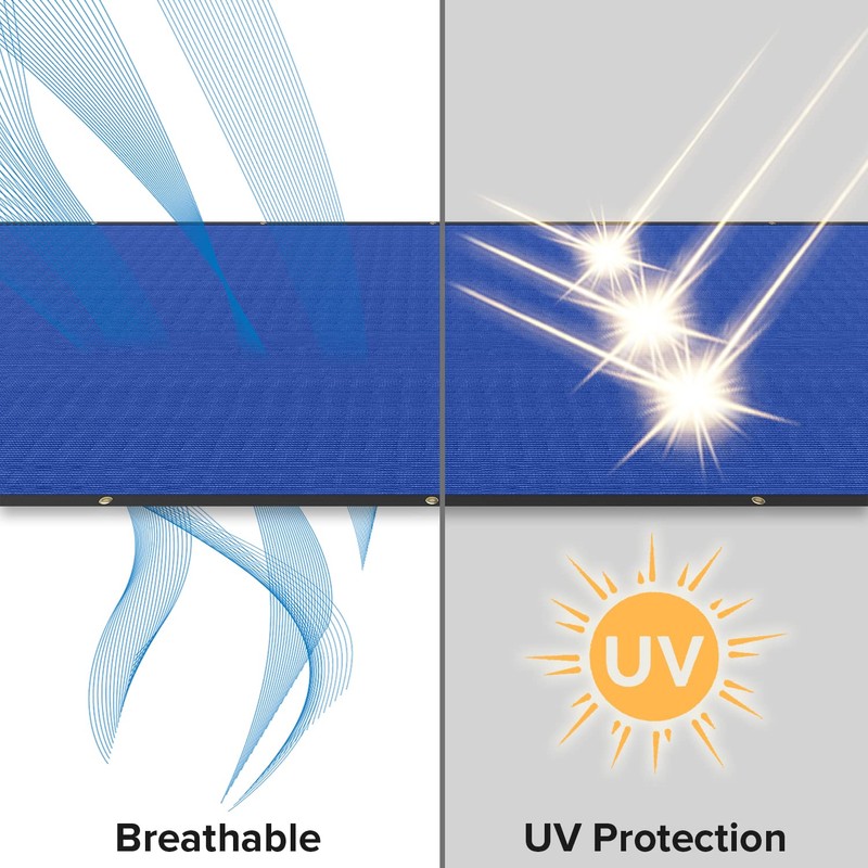 - High Quality Material: 195GSM High quality polyethylene knitted design privacy screen is constructed of sun protected fabric with durable binding and brass grommets on each side.