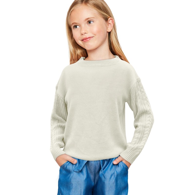 INFULEIMU Girls Sweaters Crewneck Long Sleeve Kids Sweater Fall Winter Chunky Knit Pullover Jumper 5-14 White