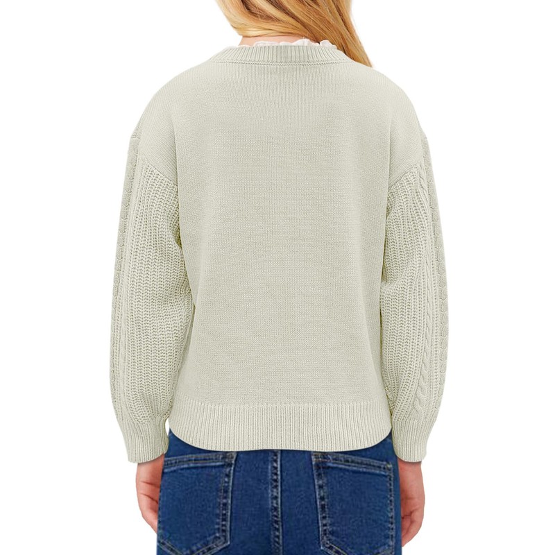 INFULEIMU Girls Sweaters Crewneck Long Sleeve Kids Sweater Fall Winter Chunky Knit Pullover Jumper 5-14 White