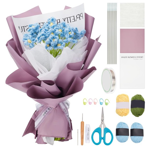 INFUNLY 10 pcs Not Forget Me Crochet Kits for Beginners Complete Flower Crochet Kits for Adults Starters with Instruction and Video Tutorials Crochet Kit Gift for Mother's Day Wedding Birthday