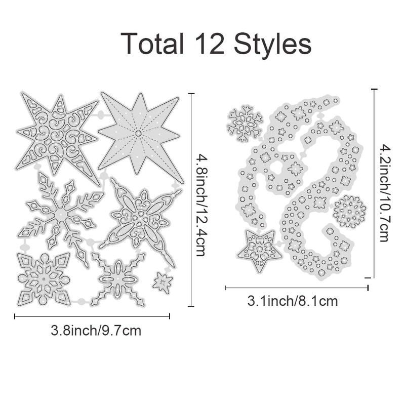- CHRISTMAS ELEMENT DESIGN: The Christmas snowflake star cutting dies set includes various sizes of snowflake patterns and other novel and unique star shapes, with different styles and sufficient quantities for you to choose from. This winter, you can use them to decorate your photo albums and artworks, which will showcase more creative and personalized Christmas wishes!