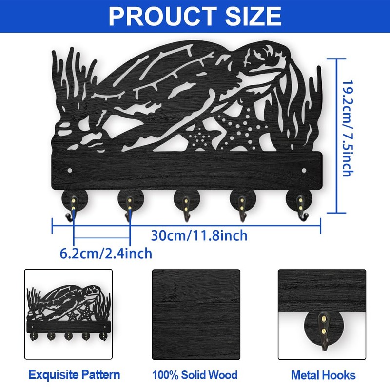 - WHAT'S IN THE PACKAGE: Including a turtle black log key holder with 5 hooks,and installation screws.Dimension is 11.8-inch x 7.6-inch.This beautiful marine style key holder will add a little touch to your environment!