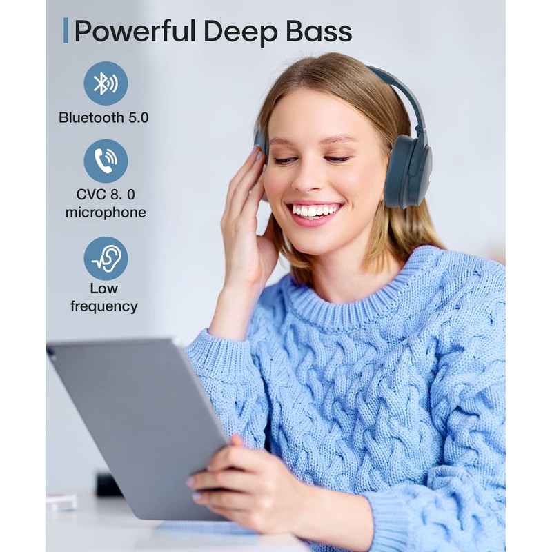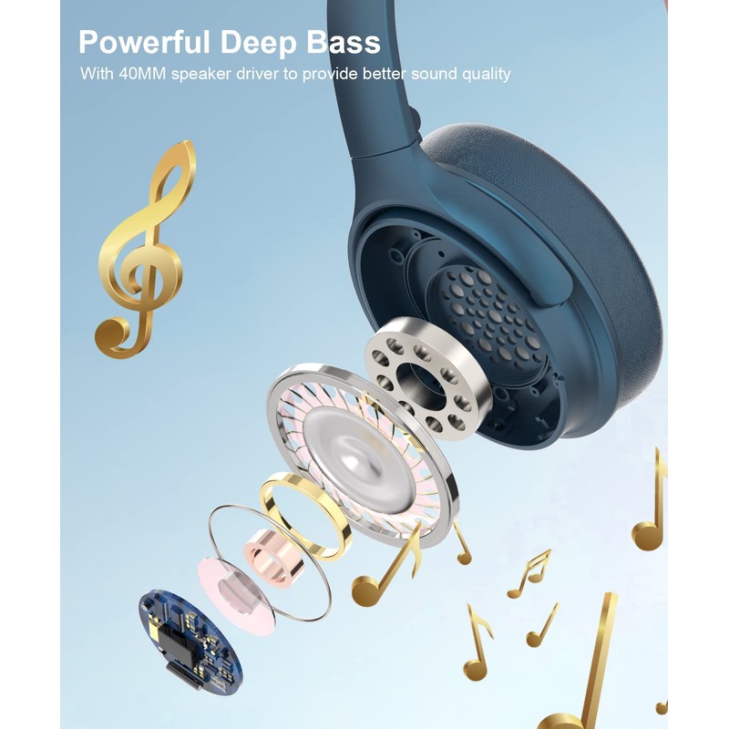 INFURTURE Active Noise Cancelling Headphones, H1 Wireless Over Ear Bluetooth Headphones, Deep Bass Headset, Low Latency, Memory Foam Ear Cups,40H Playtime, for Adults, Kids, TV, Travel, Home Office…