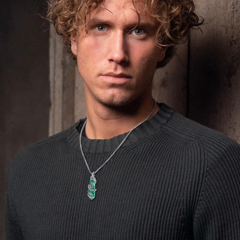 - Stunning Green Accents: The Phoenix Necklace with Malachite captivates with its stunning green accents. The rich color of malachite adds an exotic touch to any outfit, making it a stand-out piece in your jewelry collection