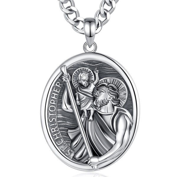 INFUSEU Unique Religious Gifts for Men Women, St. Michael/St. Christopher/St. Benedict/Virgin Mary Pendant Necklaces, 25.2mm, Sterling Silver, sterling silver