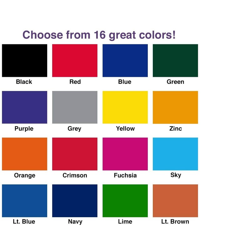 - INK COLORS - Choose from Black, Blue, Red, Green, Purple, Gray, Orange, Sky, Lt. Blue, Lime, Brown, Yellow, Zinc, Crimson, Fuchsia, Navy using the Customize Now option
