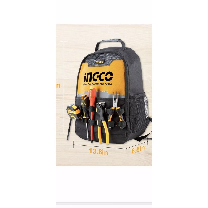 Ingco Tool Backpack,Tool Bag with Laptop Compartment, Professional Multifunction
