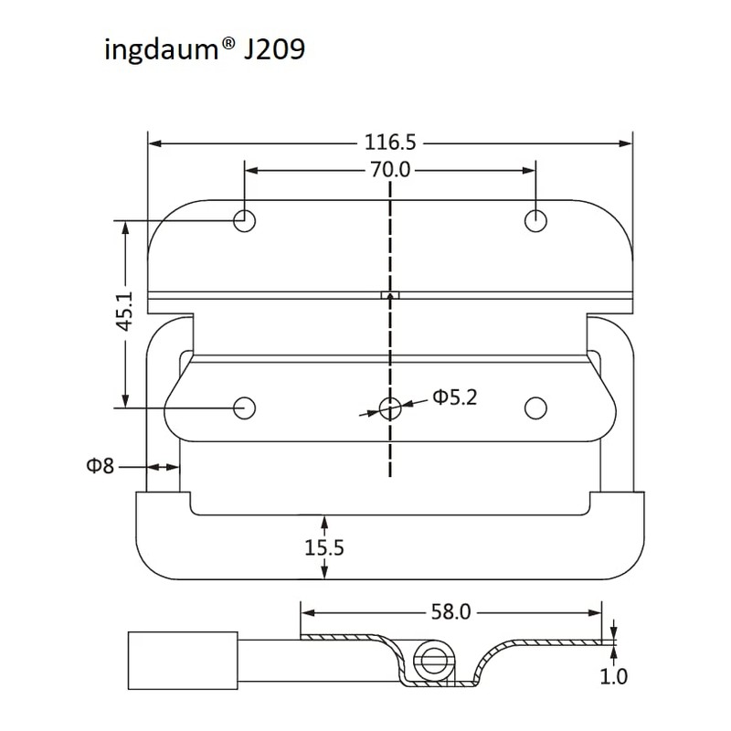 INGDAUM Drop Handle (Pack of 2) J209, Folding Handle, Aluminium, Oxidized, Holding Force 20 kg, Weight 109.5 g