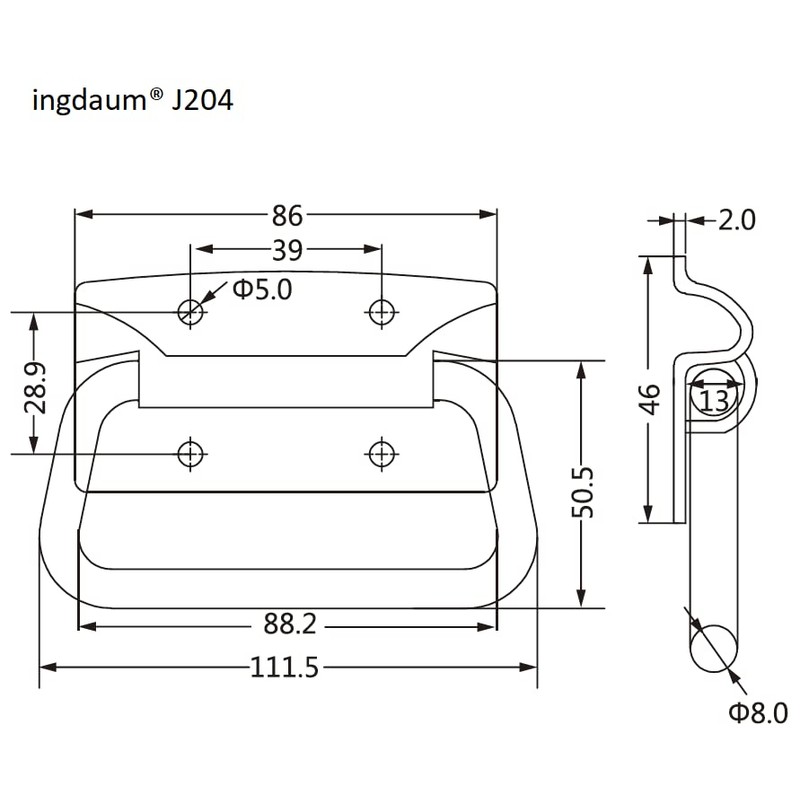 - INGDAUM Drop handle (2 pieces) J204, folding handle, stainless steel A2 (201), holding force 250 kg, weight 160 g, rust-proof, quantity per packaging unit: 2 pieces