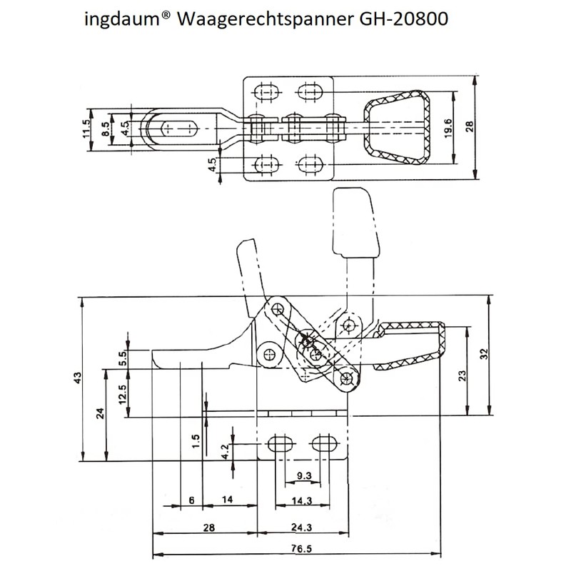 - INGDAUM 1 x horizontal tensioner tensioner holding force 30 kg, GH-20800, quick release push rod tensioner toggle clamp, horizontal base plate, mild steel, galvanised, adjustable spindle M4 x 25 mm, opening angle 80°, handle opens 88°