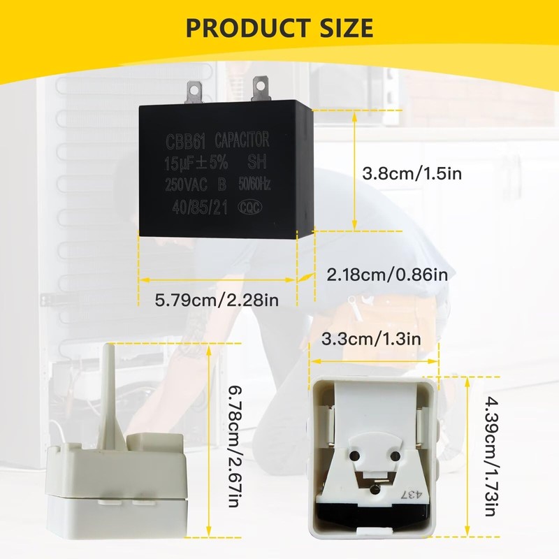 - Package includes: 2x Refrigerator Compressor Start Relay and Capacitor Replacement as pictured