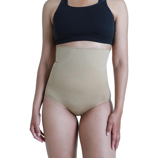 Ingrid & Isabel Basics Seamless Postpartum Compression Underwear, Over the Belly Fit, Compression & Support for Recovery, Nude, Womens Size S