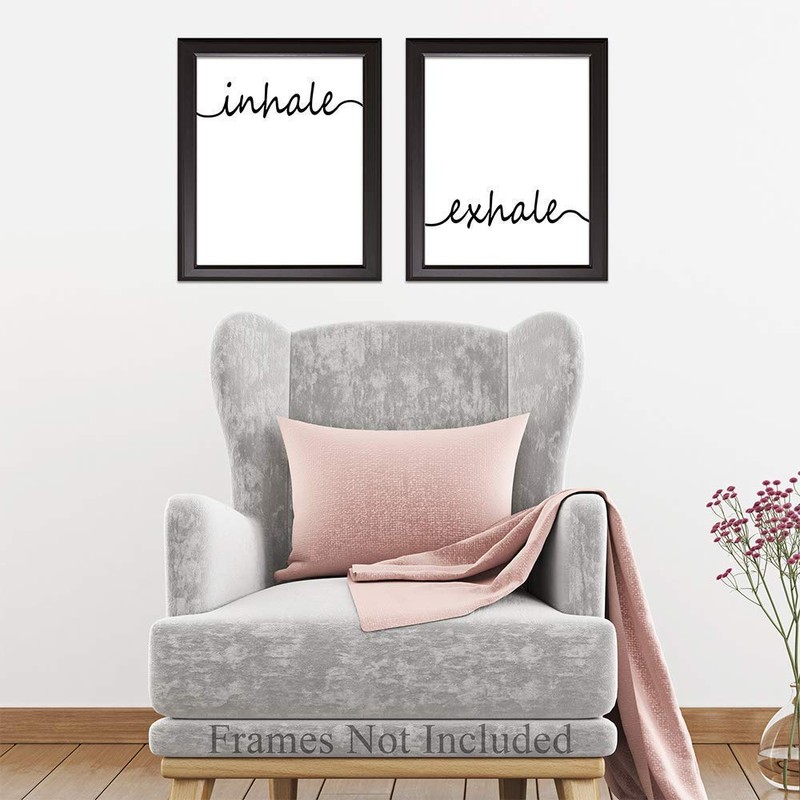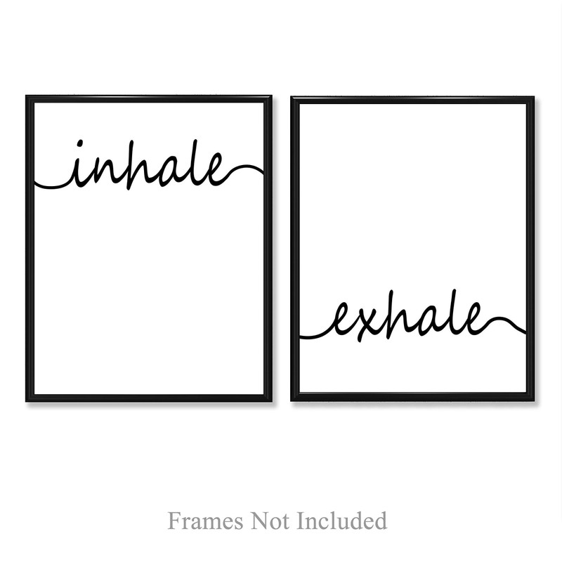 Inhale Exhale - Set of Two Black and White 11x14 Unframed Prints - Great Bathroom, Bedroom, Yoga Studio and Minimalist Gym Decor and Gift Under $20