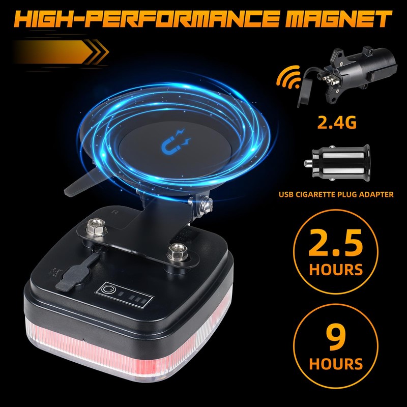 ❖Upgrade your towing experience with our Wireless Trailer Lights Kit, designed for unmatched convenience, flexibility, and safety. Whether you're hauling a boat, RV, utility trailer, or farm equipment, these portable LED tow lights offer a reliable lighting solution without the hassle of wiring.