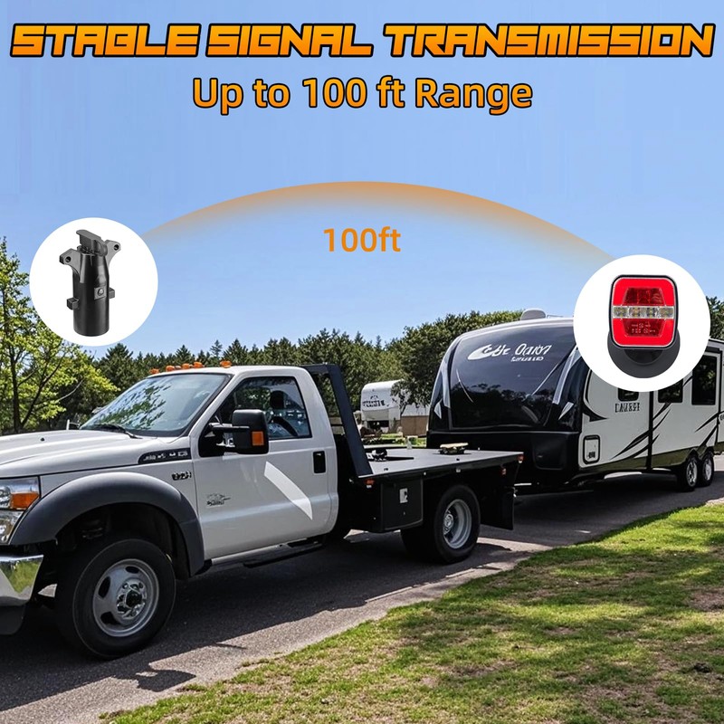 - Stable Dual-Signal Transmission: This wireless tow lights equipped with a 2.4GHz built-in antenna and dual-channel transmission, these wireless tow lights offer over 100 feet (30.5 meters) of reliable signal range—perfect for trucks, RVs, trailers, and longer vehicles.