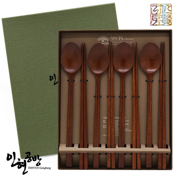 Inhyeon Workshop Premium Natural Lacquered Wooden Spoons (Basic) Family Set of 4 / 인현공방 프리미엄 천연옻칠나무수저 (베이직)4벌 가족세트
